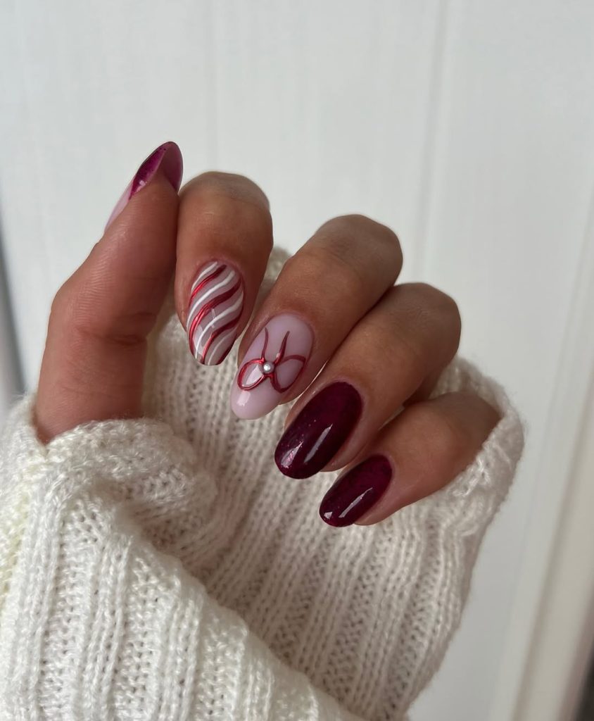 This look is perfect for the winter season and especially fitting for Christmas celebrations. It works well on almond nails and suits those who enjoy art ideas that are delicate rather than bold. Pair it with neutral outfits or soft knits to let the design shine in a quiet, elegant way.