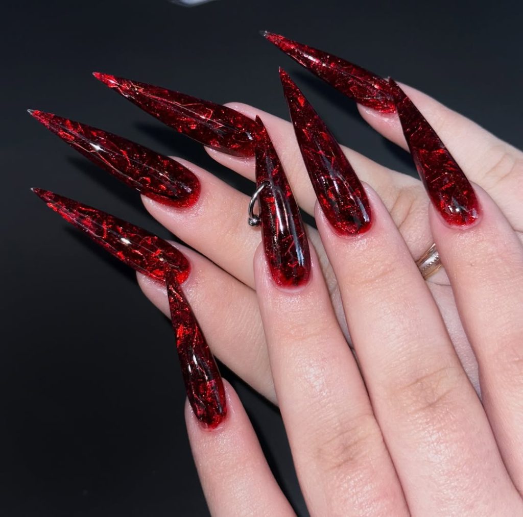 Best suited for acrylic lovers who enjoy dramatic designs, this style is perfect when you want inspo that pushes boundaries. It’s ideal for special occasions, creative settings, or moments when you want your nails to reflect confidence and individuality. Balance the look with simple outfits so the nails remain the star.