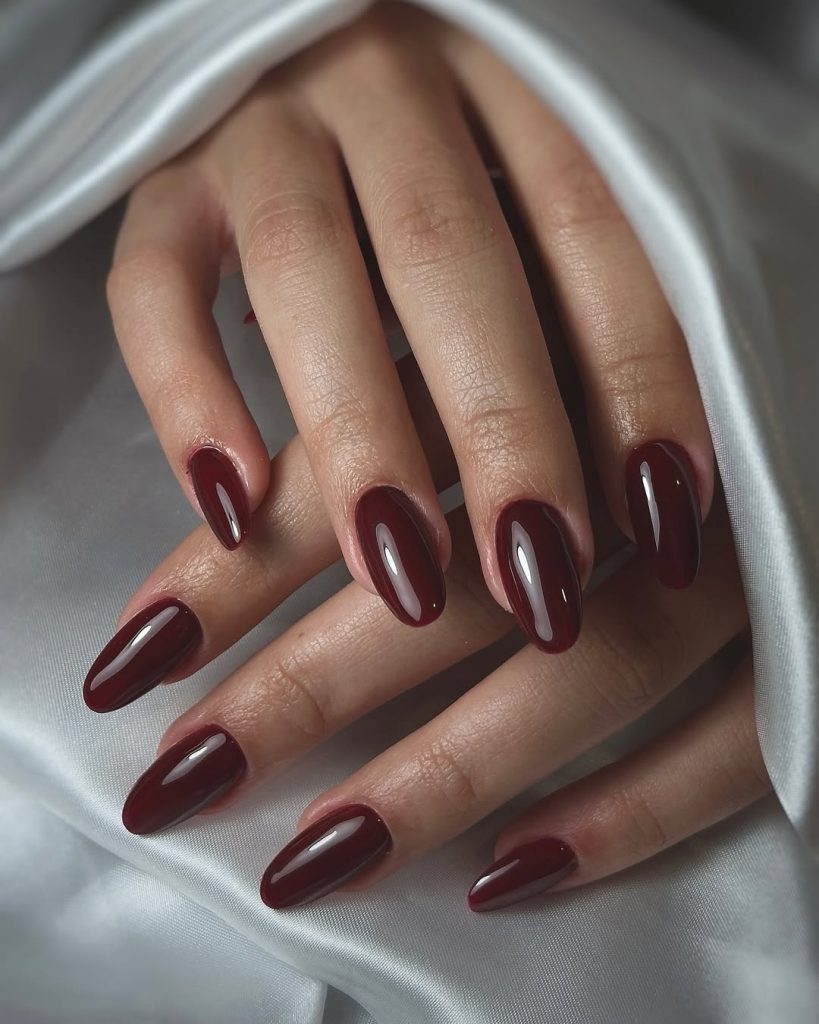 20. Classic Dark Cherry Red Almond Polish