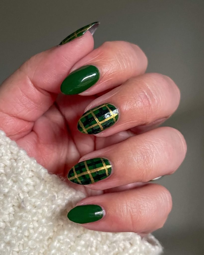 This design works best if you enjoy structured but easy styles. The plaid effect looks intricate but can be achieved with simple striping tape, making it one of those easy diy ideas to try at home. Short nails and medium length nails carry this pattern just as beautifully as long ones, and the deep green shade flatters every skin tone.