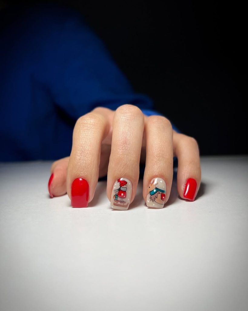 This design is best for women who enjoy easy diy ideas with personality. Short nails or medium length nails are perfect canvases for these charming illustrations, and the nude base keeps it looking fresh and not overly busy. Wear it with cozy sweaters or a fun holiday jumper for the perfect festive vibe.
