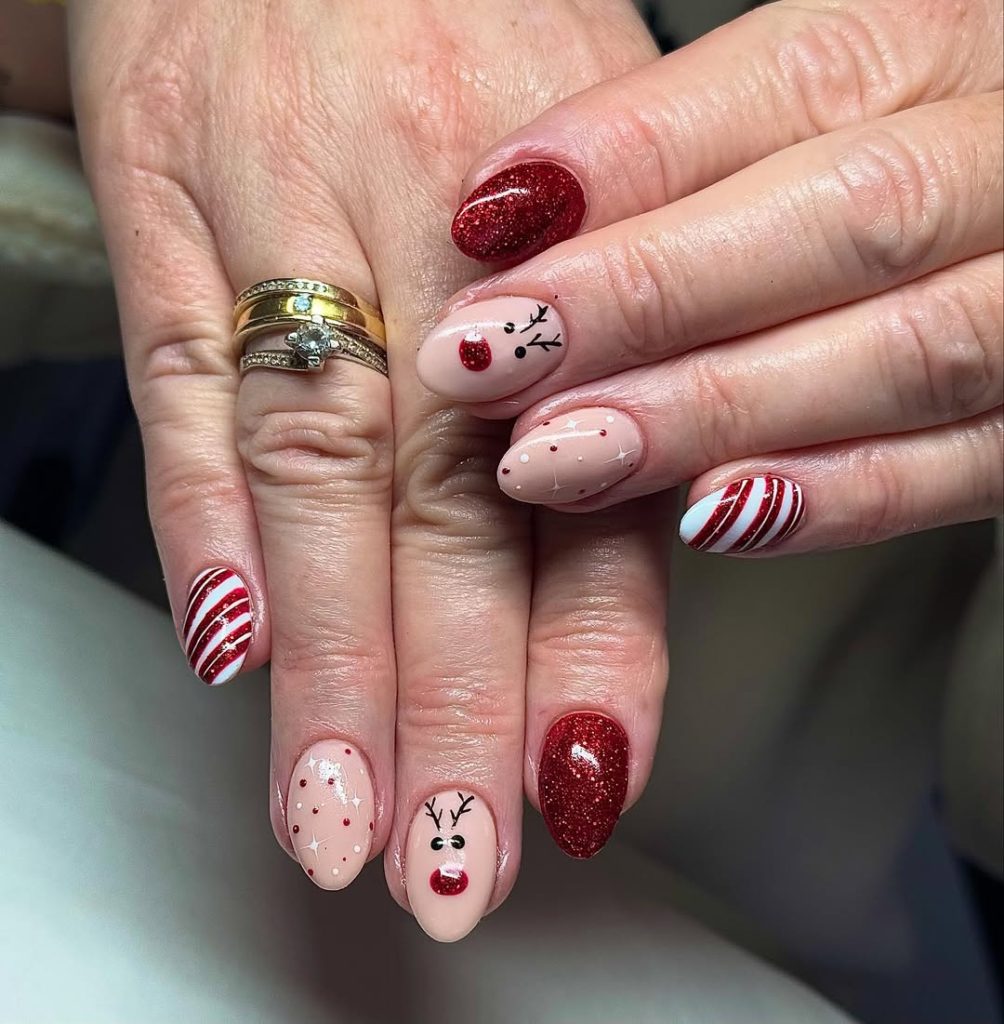 This style works with natural nail shapes and acrylic ones, so it is for the woman who adores festive art. They are easygoing and can be worn with casual holiday outfits and bold red lipstick to complete the seasonal look. Not just a piece of nail art, it reminds one to embrace the joy and childlike excitement of the holiday season.