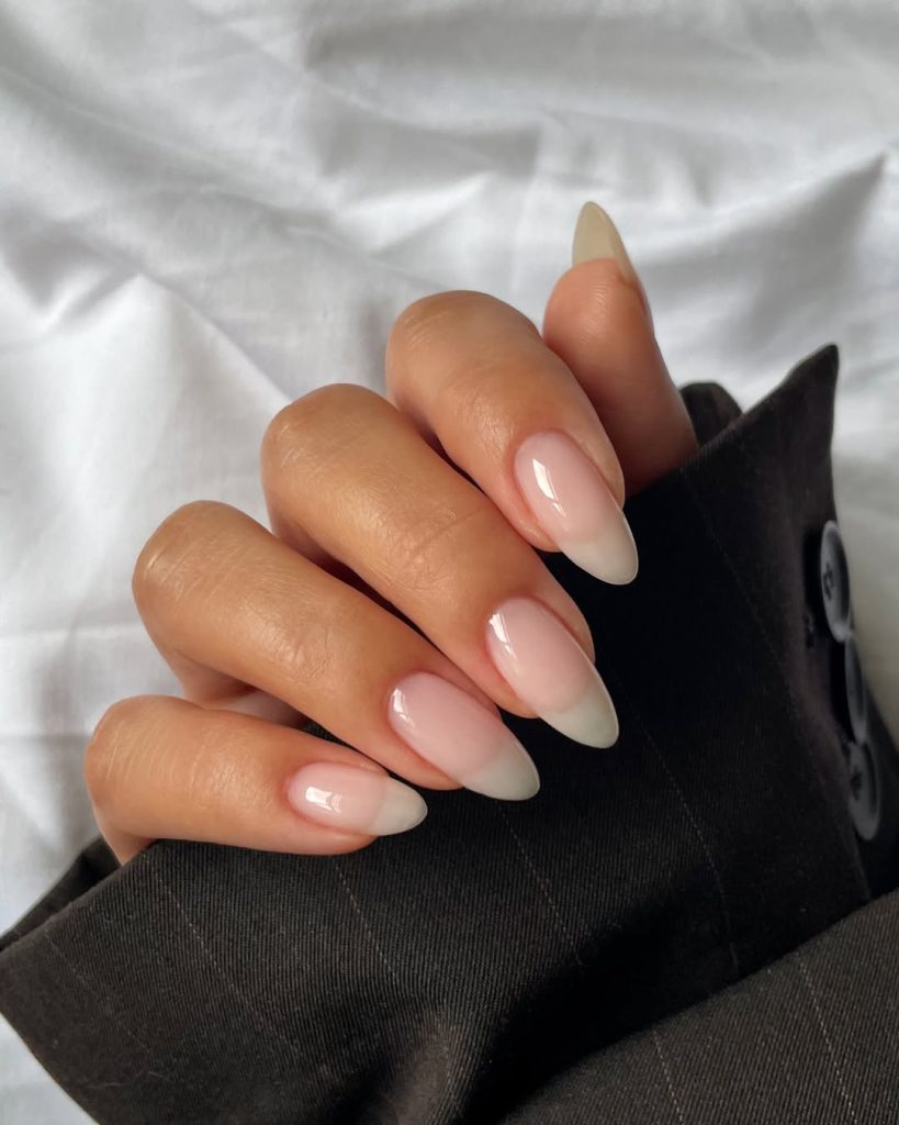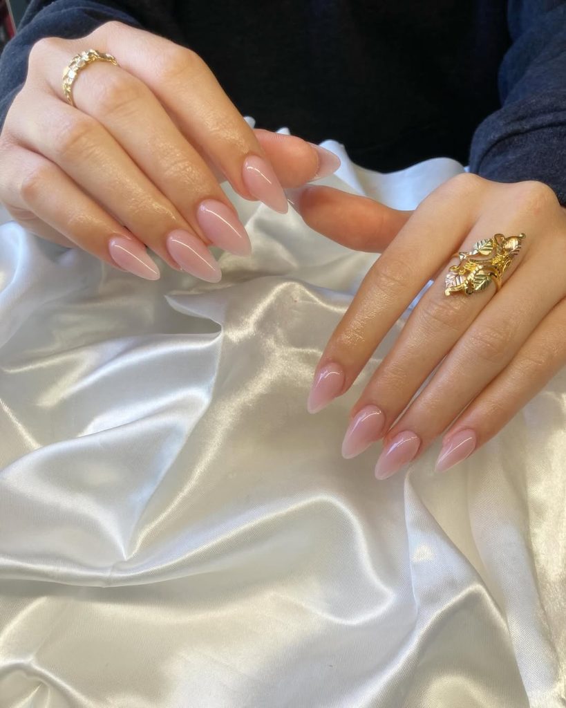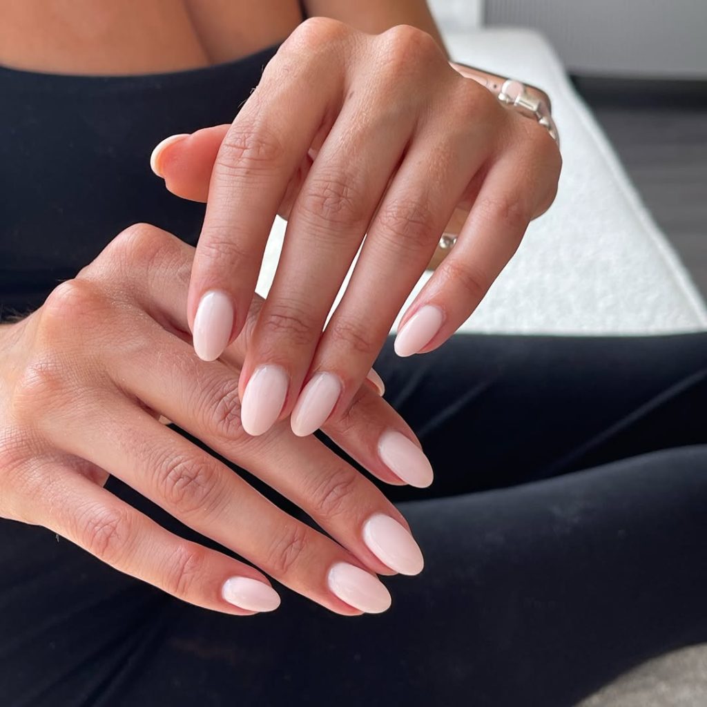 30. Classic Nude Almond Nails with Clean Gloss Finish
