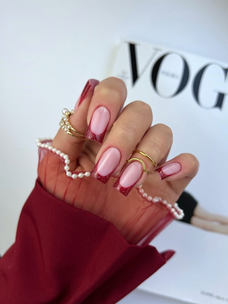 If you enjoy design ideas that balance elegance with personality, this one fits beautifully. Square shapes are ideal for stronger nails and offer durability for everyday wear. The contrast of pink and red works across seasons, from summer evenings to winter events. It’s a wonderful inspo choice if you want color without committing to something too loud, and it pairs especially well with minimalist outfits and gold jewelry.