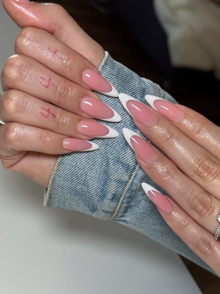 Stiletto nails are ideal if you enjoy long shapes and want your manicure to feel expressive. The white tips keep the overall look balanced and wearable, even with the dramatic length. This style works well with acrylics or extensions and is surprisingly versatile when paired with neutral outfits. If you’re craving something confident, aesthetic, and fashion-forward, this design delivers.