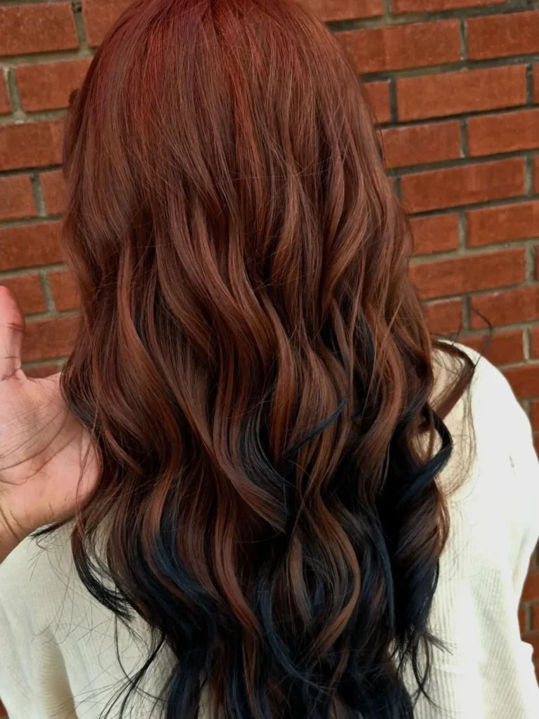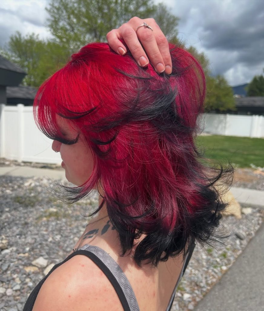 This hairstyle works beautifully for medium to thick hair that can hold layered movement. The darker undercolor adds depth, making the brighter shade appear even more vibrant. If you’re exploring daring color Ideas but still want dimension and balance, this pairing of Red and Black offers Inspiration that feels bold without losing elegance.