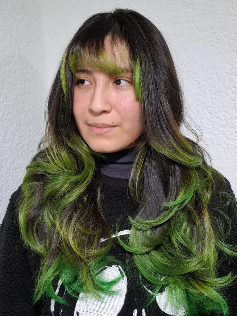 This type of color placement works wonderfully for medium to thick hair with natural movement. The layered cut helps distribute the Green tones so they appear throughout the hair rather than in one heavy section. Among modern color Ideas, this earthy blend stands out because it feels bold yet grounded, making it a refreshing alternative to brighter fantasy Colors.