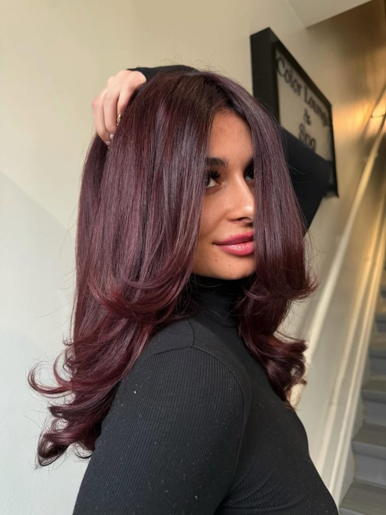 This style is especially flattering for women seeking ideas for brunettes who desire a deeper and more dramatic look than standard brown. The layered cut enhances the color variation, making the tones appear multidimensional instead of flat. Compared with brighter Reds, this burgundy-inspired shade feels more refined and wearable for everyday Styles.