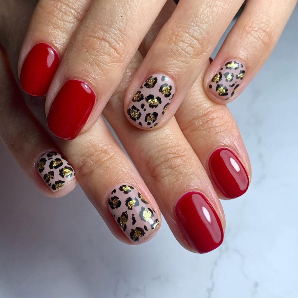 It looks fabulous on long and square, almond-shaped nails. However, if you want to switch to a different design, you can add some pink and/or glitter to give it more interest. Leopard and red are a classic combination that never dates.