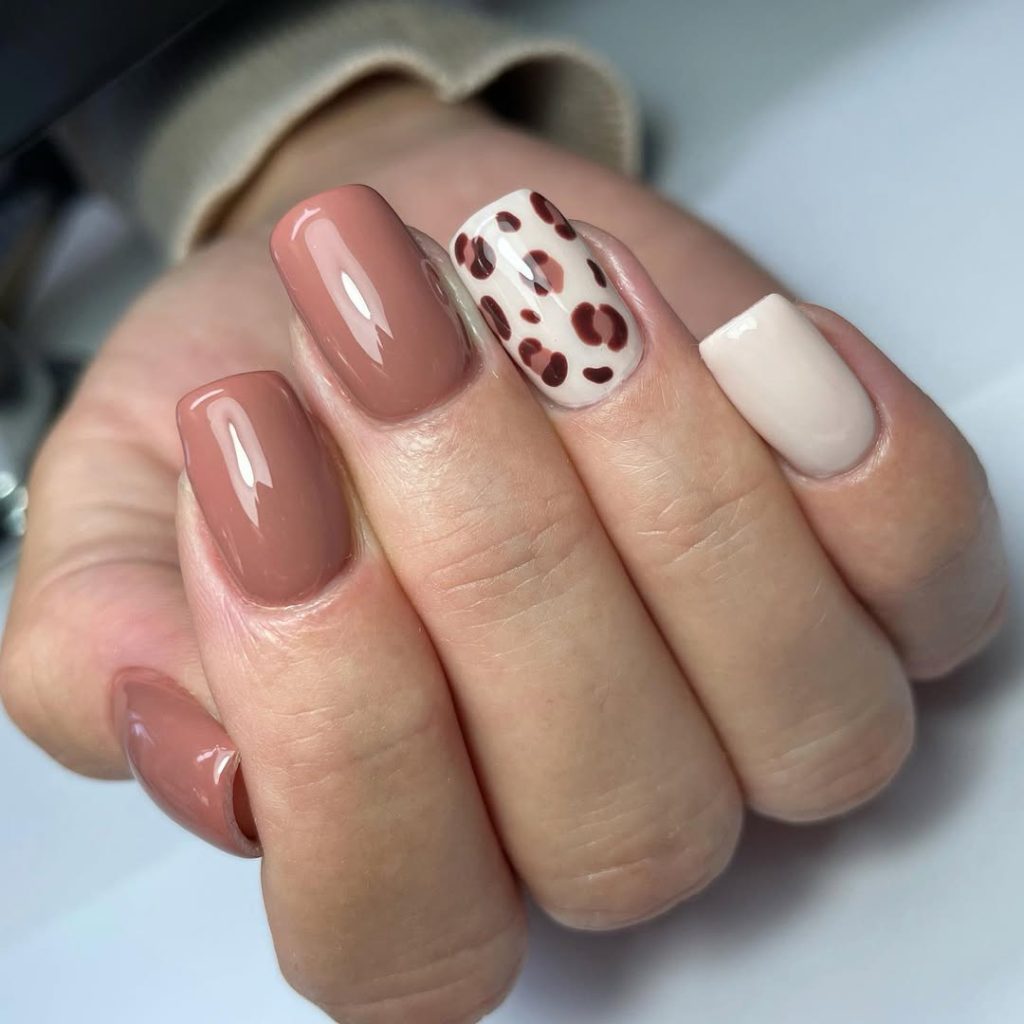 In this case, sometimes less is more. The beauty of this manicure is that it combines a neutral palette of beige and brown with a touch of leopard to achieve a fresh and chic look. The simplicity is subtle but not boring. Just add a scarf to a neutral outfit for that effect.