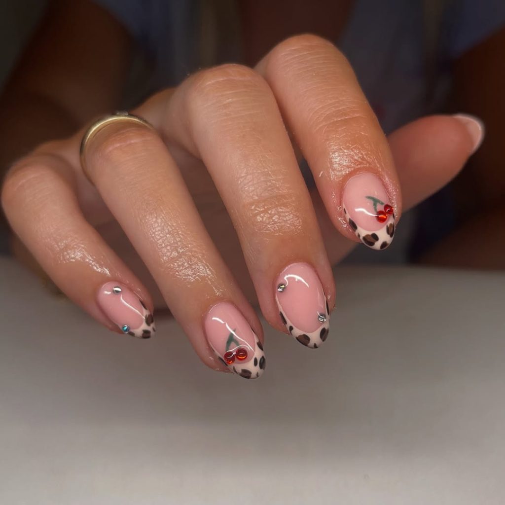 These nails bring together two fun details: leopard French tips and vibrant neon pink bows. The playful mix keeps the look youthful and trendy, while the nude base balances everything out. It feels girly, bold, and just right for those who like a little whimsy.