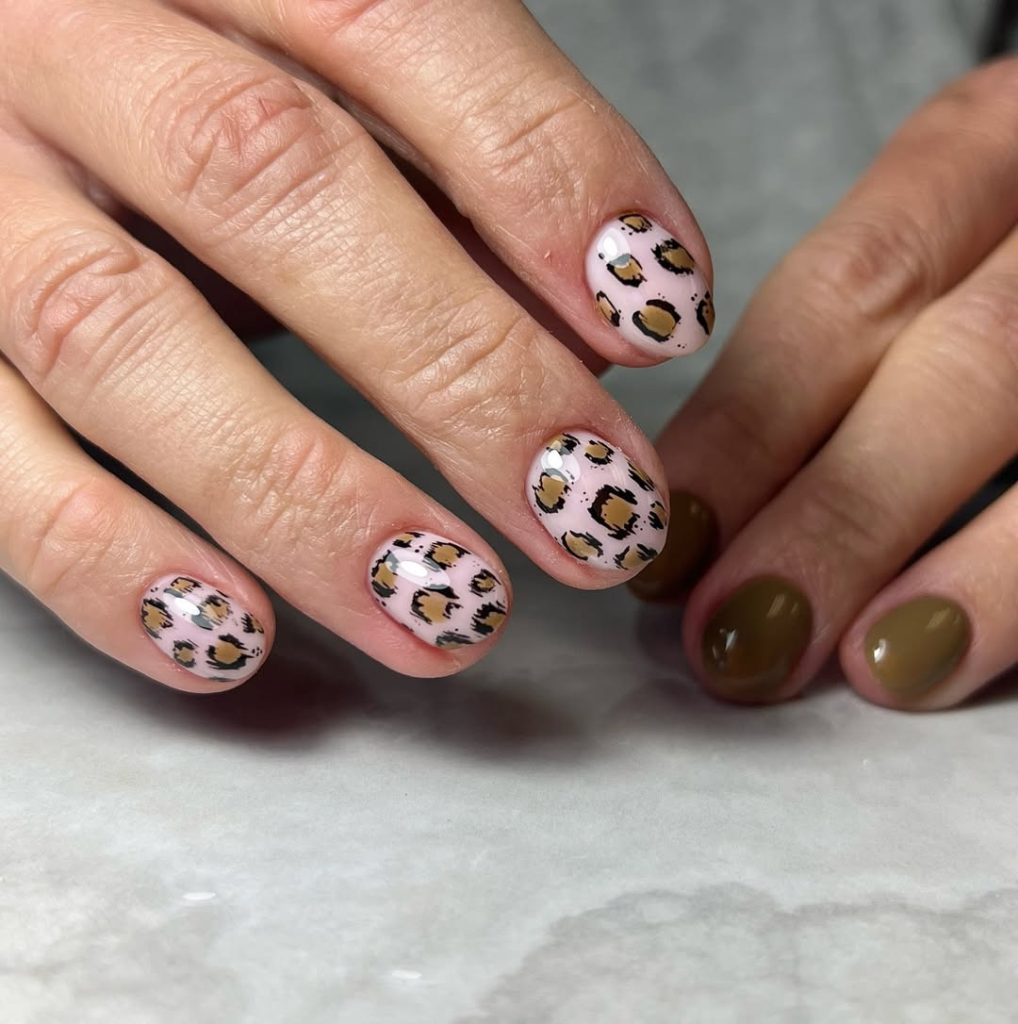 Short nails can still pack a stylish punch, and these leopard nails prove it. The soft pink base layered with warm brown and black spots feels playful yet sophisticated. The overall effect is trendy but easy to wear, especially if you want something noticeable without going over the top.