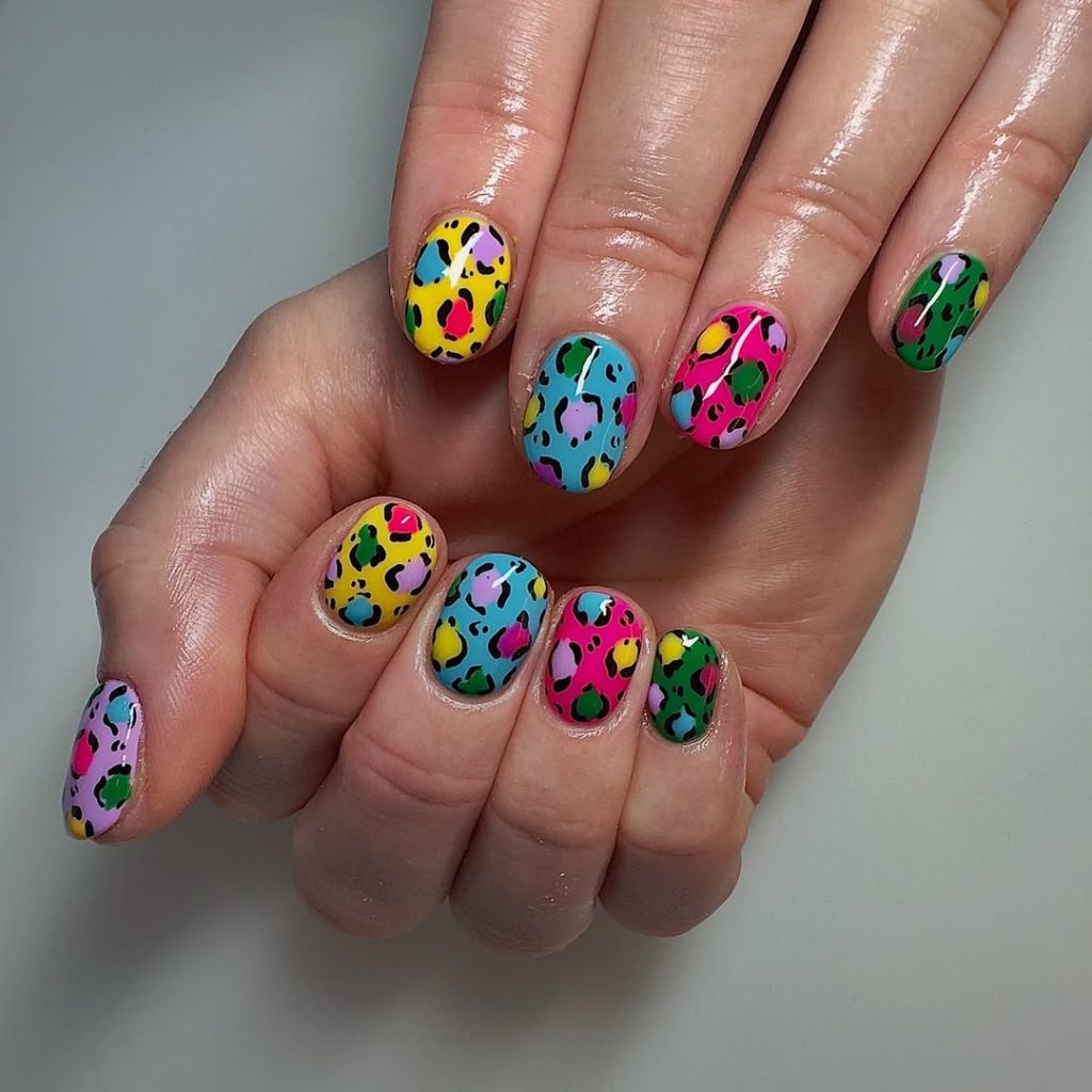 These nails are all about having fun with leopard print. Bright shades of pink, green, yellow, and blue create a vibrant rainbow effect that feels playful and unapologetically bold. It’s like taking your favorite childhood markers and turning them into wearable art for 2026.