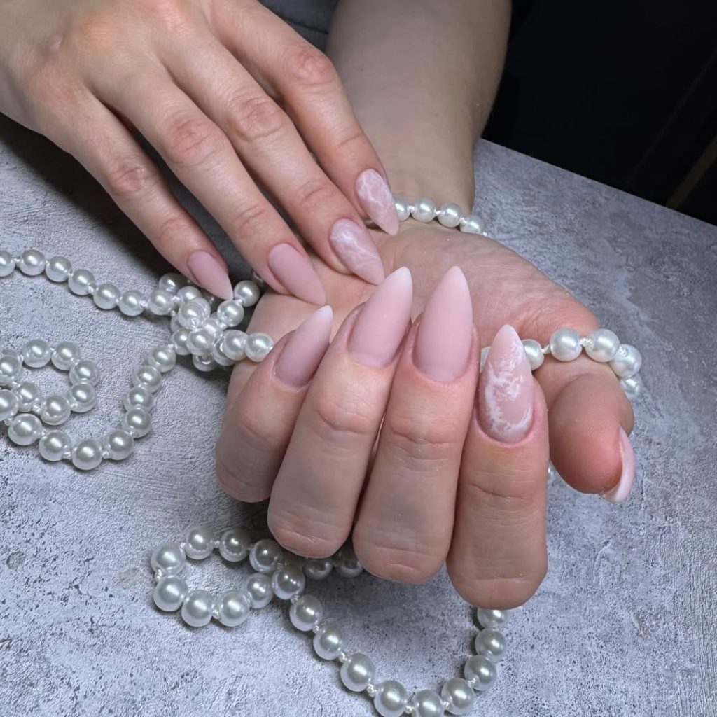 This manicure feels romantic in the most restrained way. The milky pink tone paired with a smooth oval shape creates a gentle, almost heirloom-like impression—as if these nails belong to someone who values tradition, grace, and quiet beauty. There’s nothing loud here, just a calm confidence that feels deeply rooted in classic style rather than fleeting ideas.