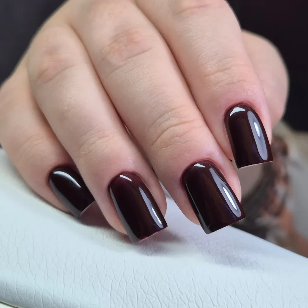 There is a sophistication in richness that this color provides. The square shape of the chocolate color is bold but remains controlled and provides the manicure with strength and structure. This look is not only timeless, strong, and sophisticated but also highly sought after.