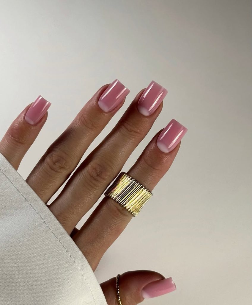 This manicure carries a slightly more contemporary feel while staying true to old money restraint. The rosy tone with a soft gradient adds depth, while the square shape keeps the look grounded and structured. It’s understated, but there’s a quiet confidence to it that feels very current.
