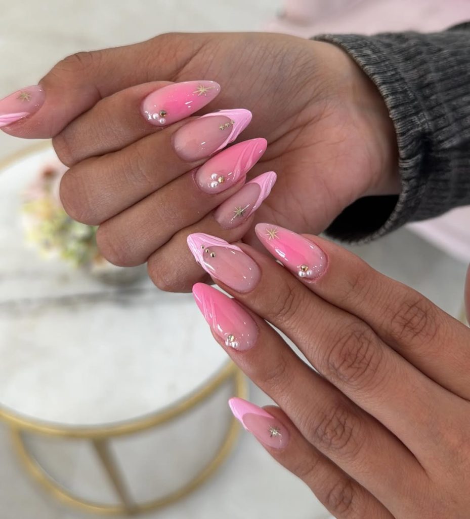 Perfect for almond or oval shapes, this manicure is great if you want something lighthearted but still stylish. The stars make them different from classic pinks, adding a pop of personality that shines best in casual, everyday settings.
