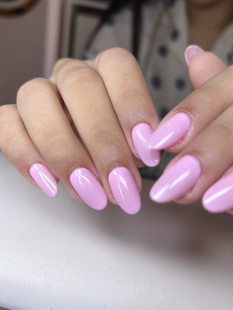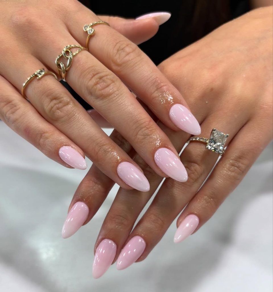 These blush-toned almond nails are simple yet striking. The glossy pink shade enhances the nails’ natural beauty, giving them a polished finish that looks chic without effort. They’re timeless, feminine, and easy to love.