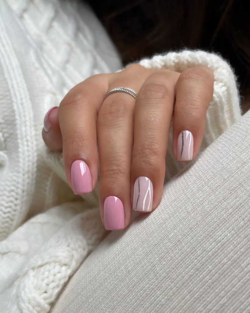 22. Minimal pink nails with silver lines