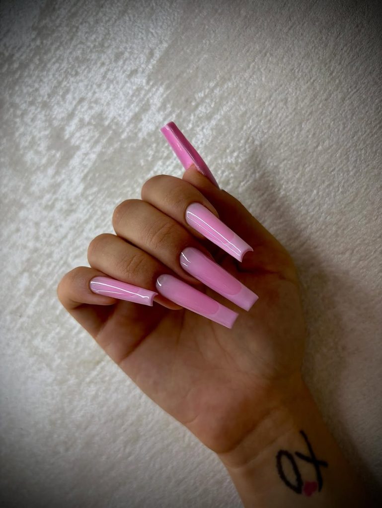 23. Long glossy pink coffin nails