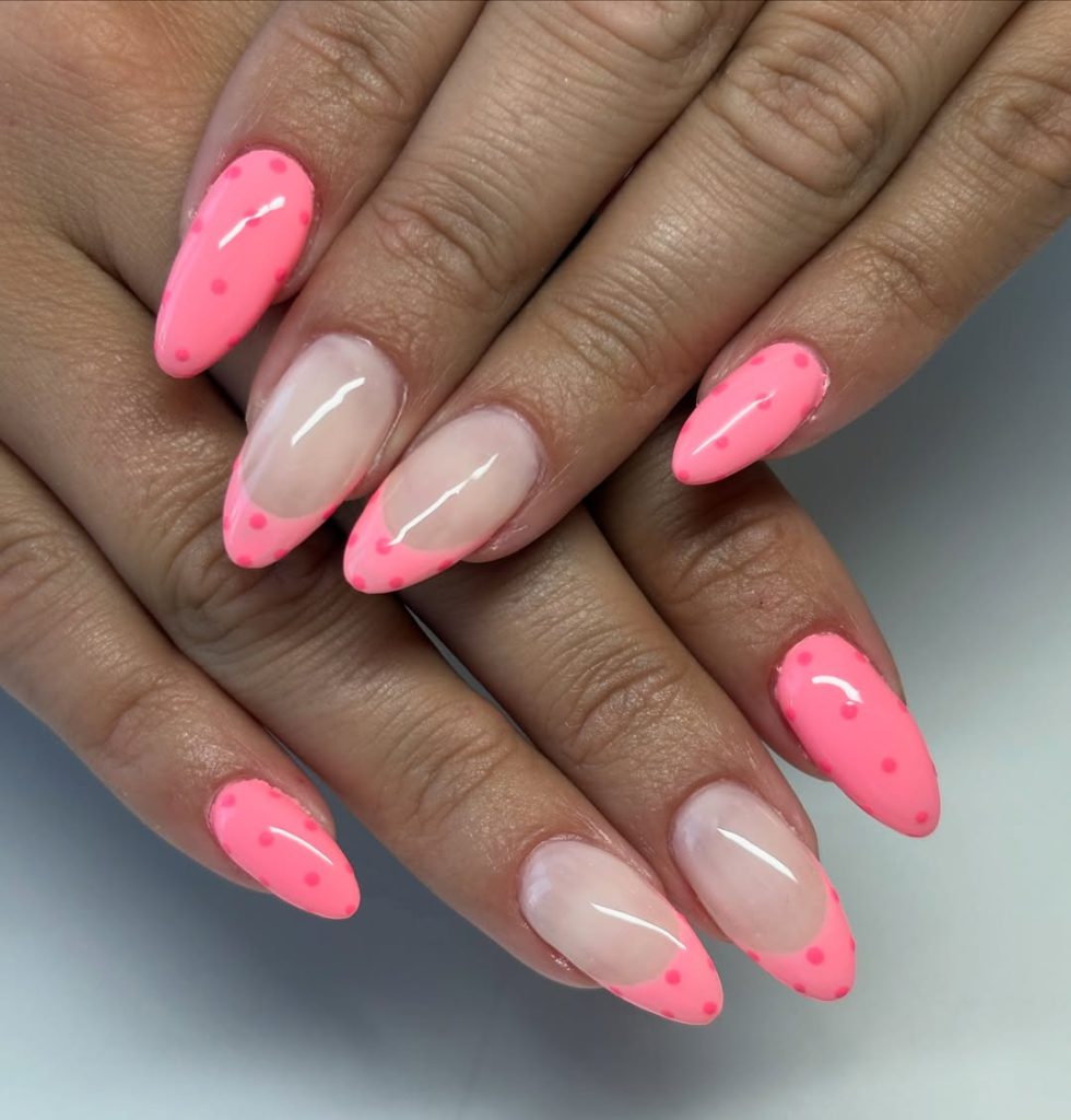 4. Neon pink french with polka dots