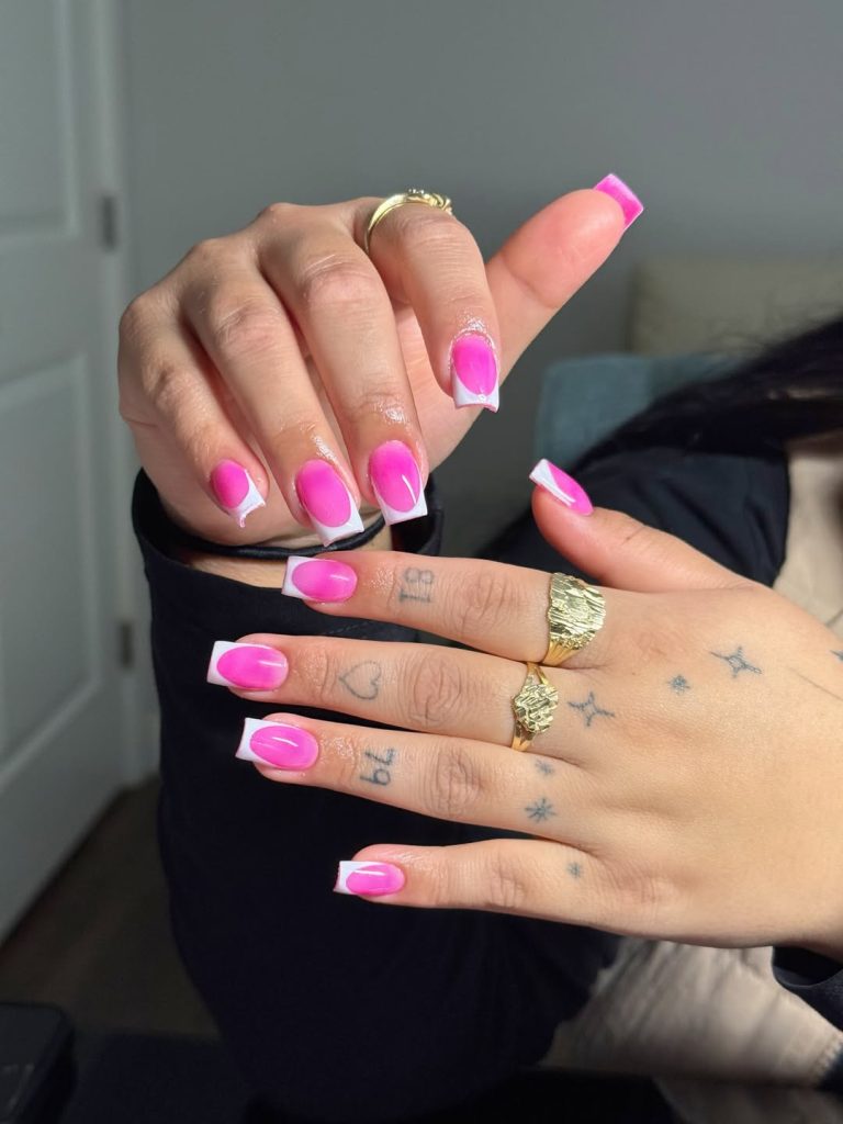 6. Bright square pink french nails