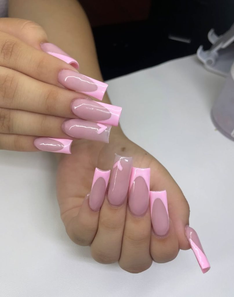 7. Long acrylic pink french with soft edges