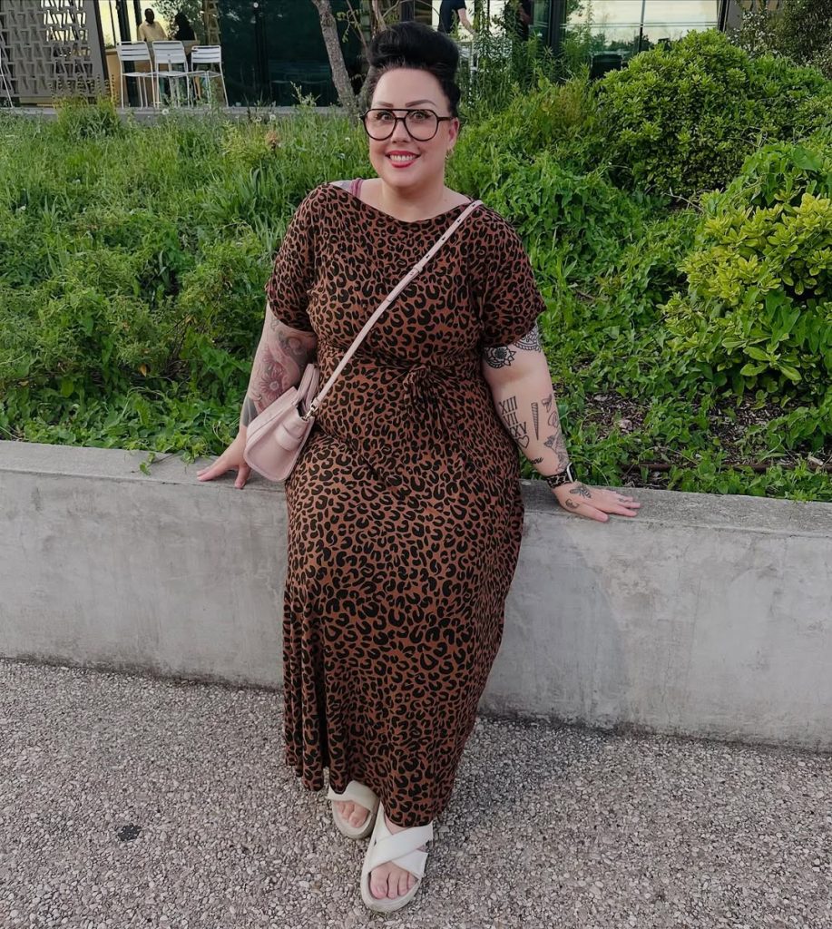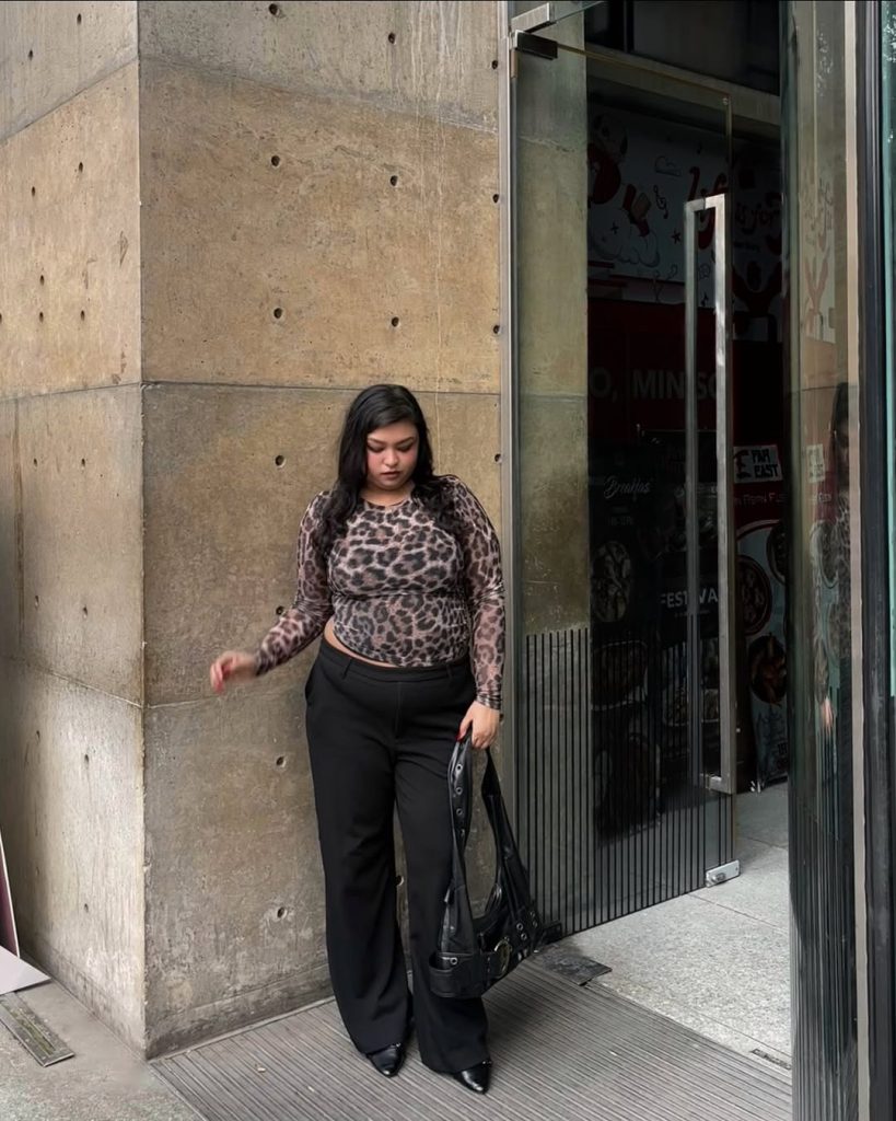 Animal print is a classic, especially when styled with grounding neutrals. This look is great for coffee walks, outdoor markets, or easy casual fall evenings. Add a cropped denim jacket for breezier nights, or layer a belt for subtle waist definition—especially flattering for pear-shaped silhouettes. Avoid clashing prints; letting the leopard stand alone keeps the look balanced. Fashion writer Nicolette Mason has long championed statement prints on plus bodies—her work pairs well with this outfit’s vibe.