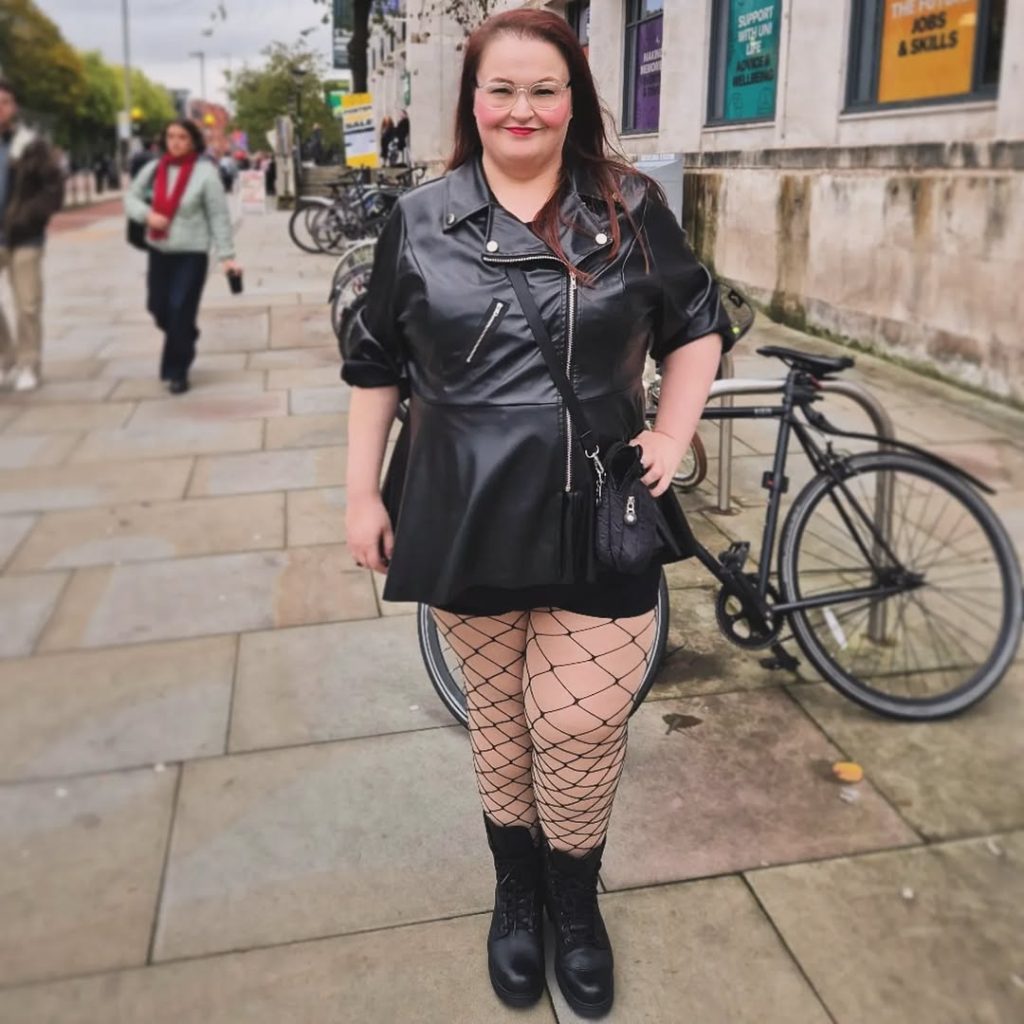 A street-smart, bold mini-dress look built around a faux-leather biker silhouette—perfect for anyone who loves an edgy take on autumn 2026 streetwear.