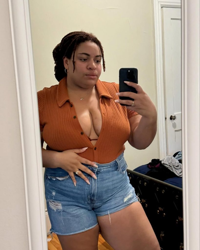 A bold, body-confident combo that pairs a plunging rib-knit top with classic denim shorts—radiant for warm days and unapologetically bold.