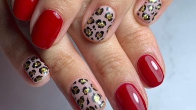 The right mix of fun and fierceness is the word for this look. A pink polish variant is the main feature, which is accompanied by a little bit of white and is complemented by a trendy leopard accent nail. The tiny fragments of gold on the print lift the art, thus, creating a feeling of being ahead of the fashion trend. It is in style, and the design is versatile as well, for example, it can be worn while running errands in sneakers or going out in heels. The one with the concept is for those girls who enjoy their nails with an extra detail.