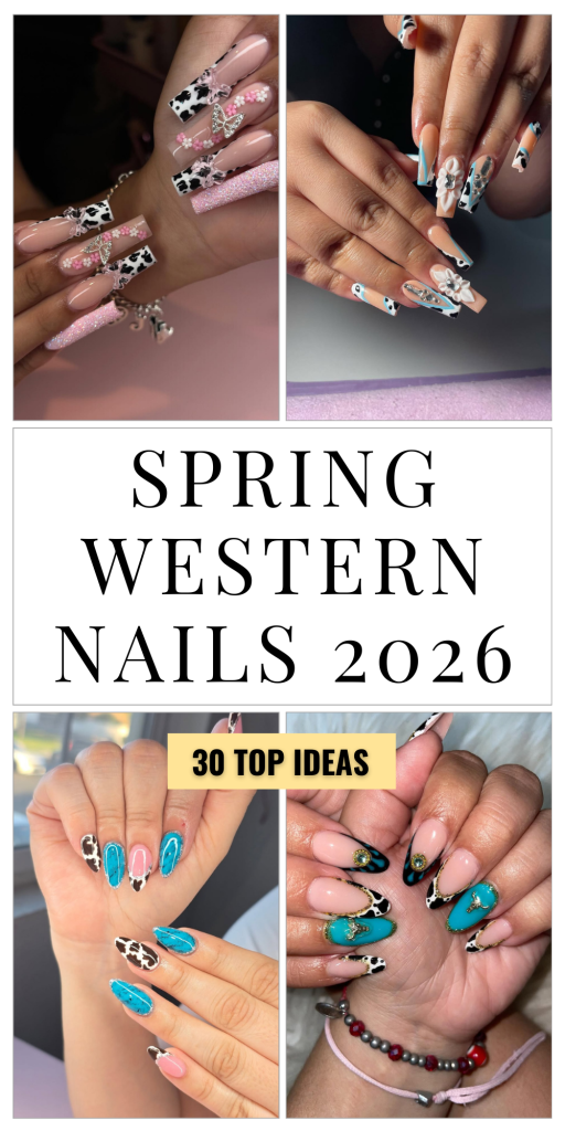 Spring western nails 2026 aren’t just about patterns—they’re about attitude. They mix earthy tones with glossy finishes, delicate art with bold shapes, and tradition with modern flair. Whether you lean toward minimalist cow print accents or full-on turquoise glam, there’s a version of this trend that fits your vibe.