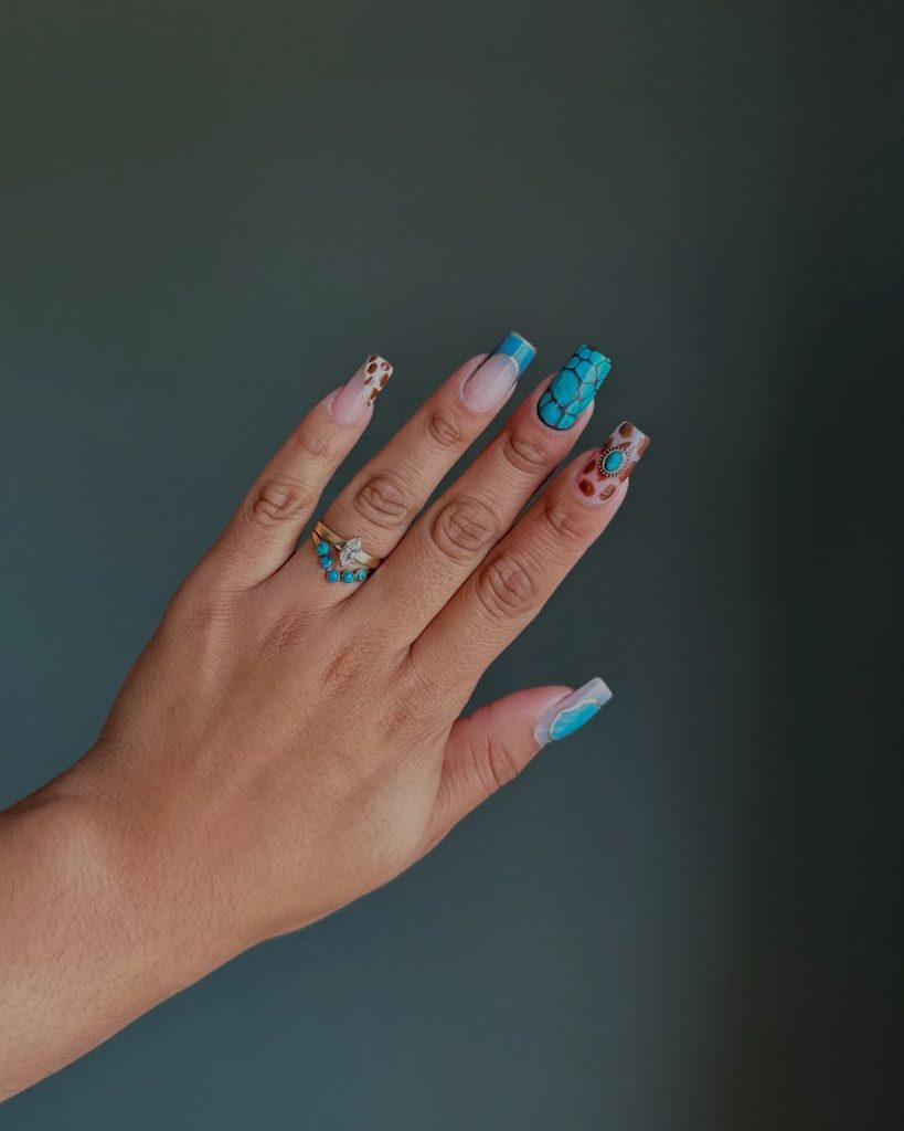 21. Turquoise Rodeo Patchwork Nails