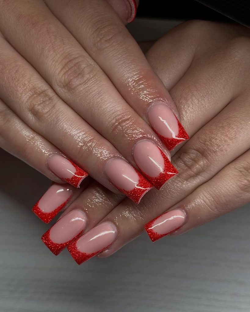Classic French meets holiday glam in this bold red glitter version. The crisp nude base makes the fiery tips stand out even more, giving a polished but festive feel. It’s a timeless design that feels both modern and nostalgic — like a holiday tradition that never loses its charm.