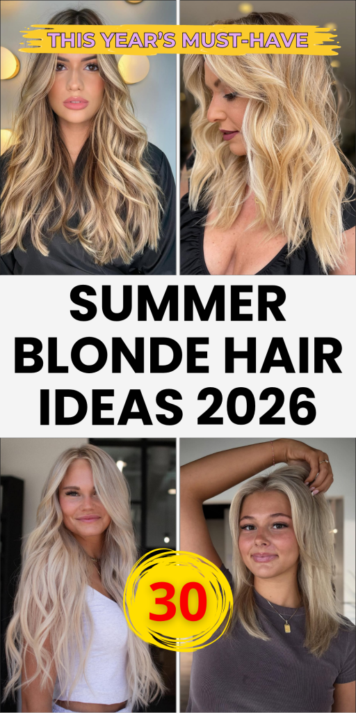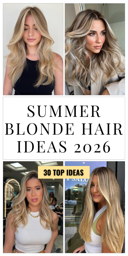 30 Summer Blonde Hair Ideas 2026 with Soft Balayage, Warm Honey Tones and Icy Blonde Trends