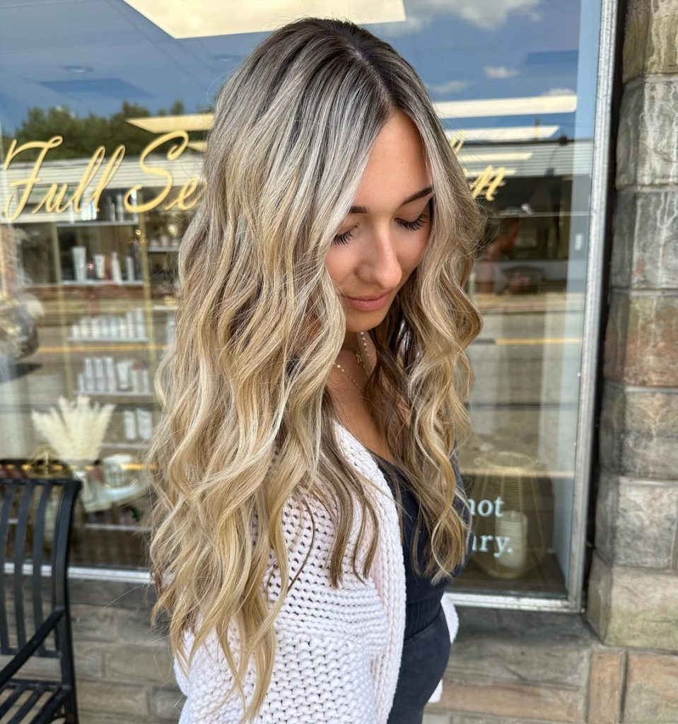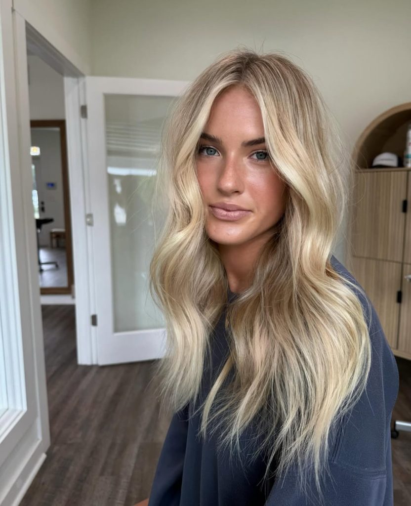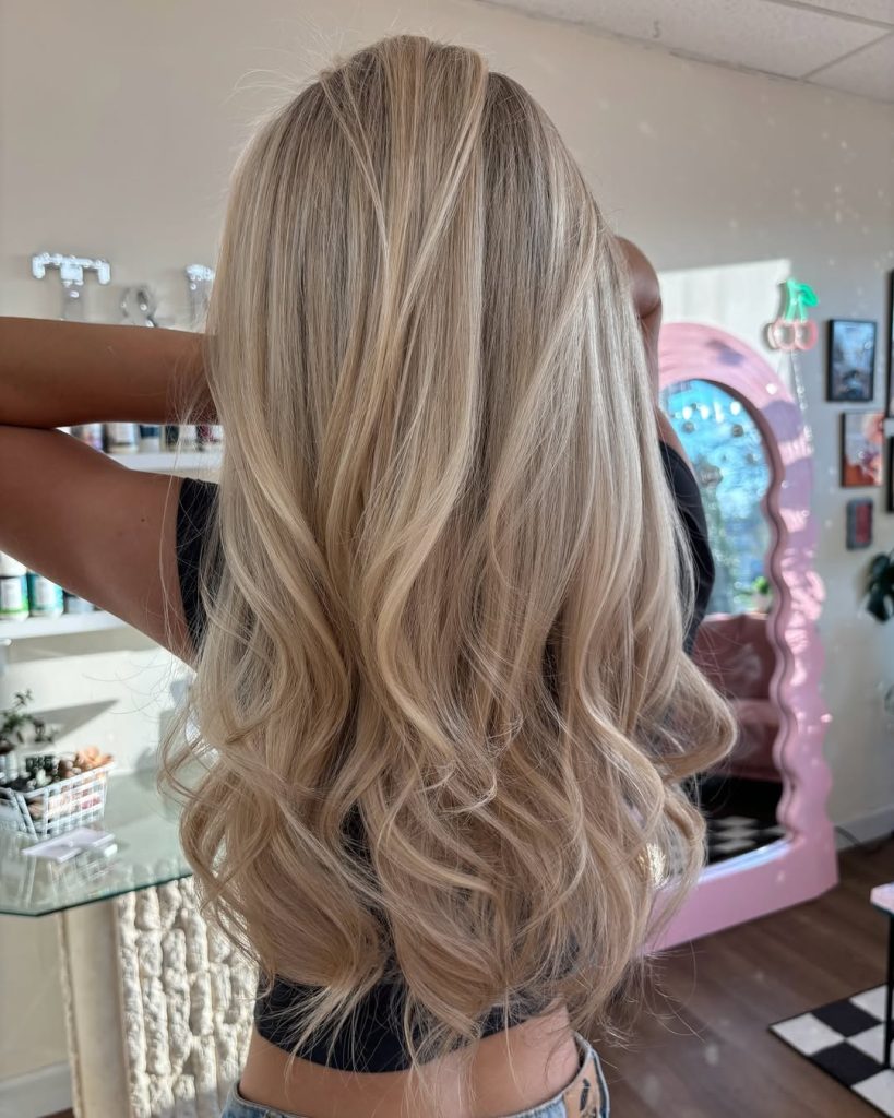 15. Long Balayage Blonde Waves with Luminous Highlights