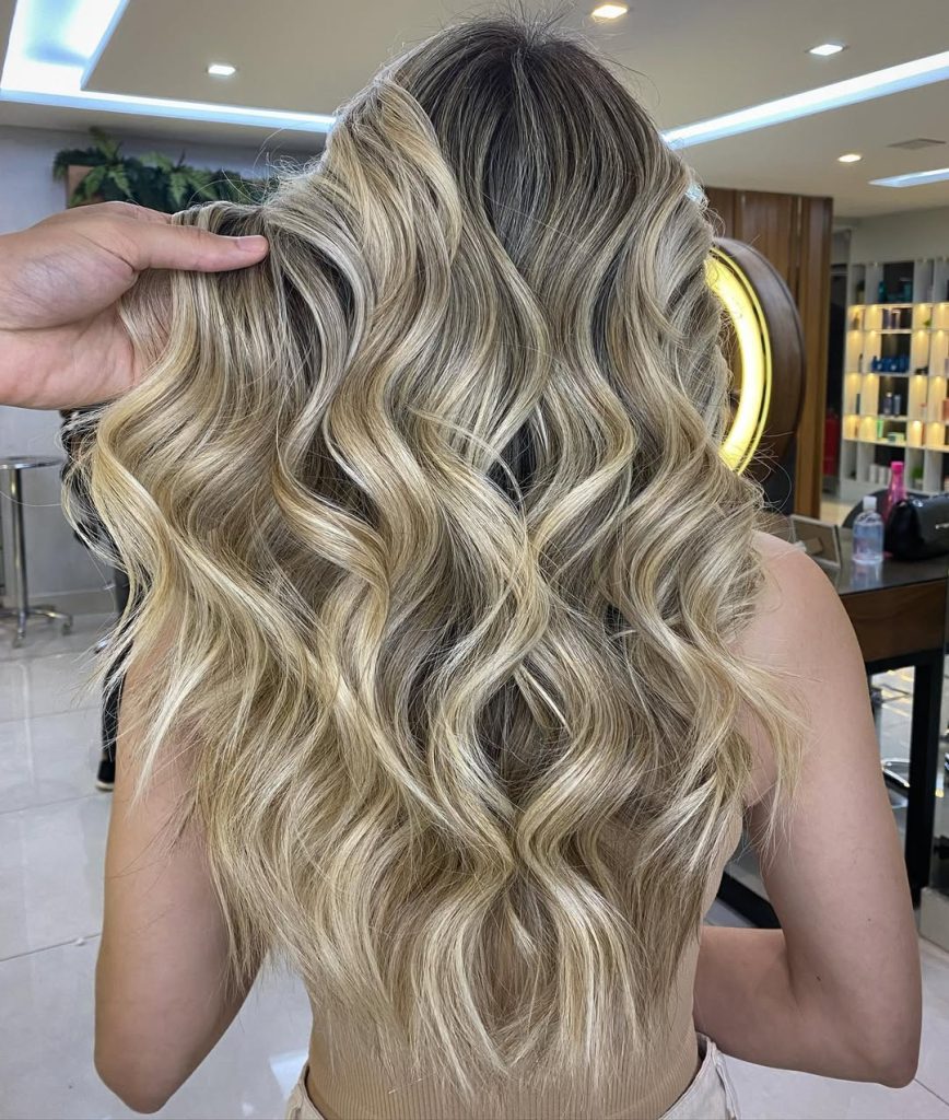 22. Voluminous Balayage Blonde Waves with Bright Dimension