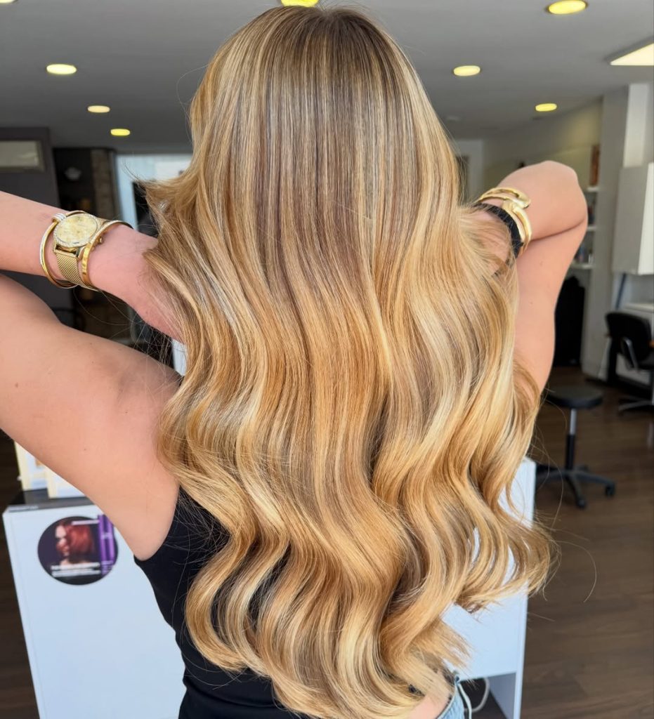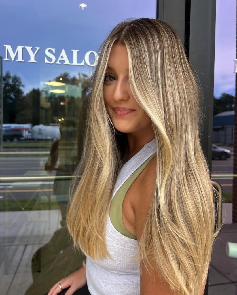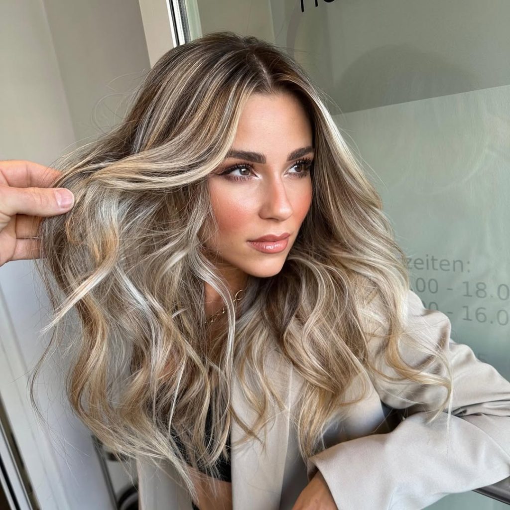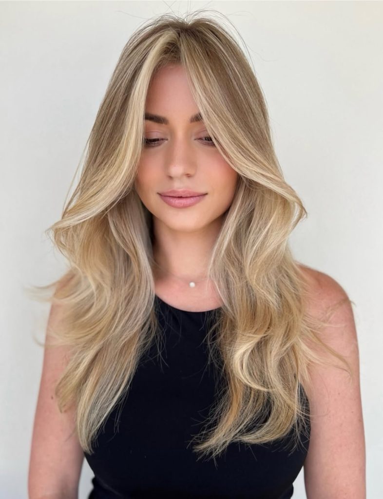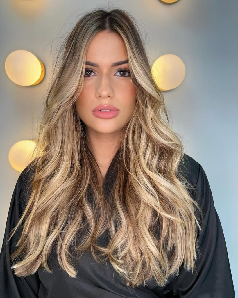 This look stands out due to the delicate mix of highlights and low lights, which creates depth without harsh contrast. It’s perfect if you want a more natural-looking blonde that still has dimension. Ideal for long hair lovers, it offers that soft, flowing effect while remaining polished and sophisticated.