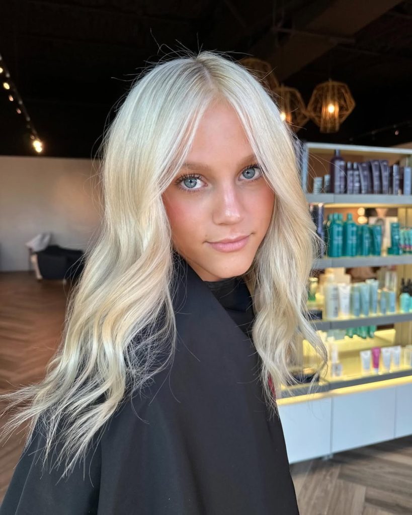 This bright vanilla blonde shade feels fresh, light, and effortlessly pretty. The color leans slightly warm, giving the hair a soft glow that works beautifully in natural light. It’s clean, simple, and incredibly flattering.