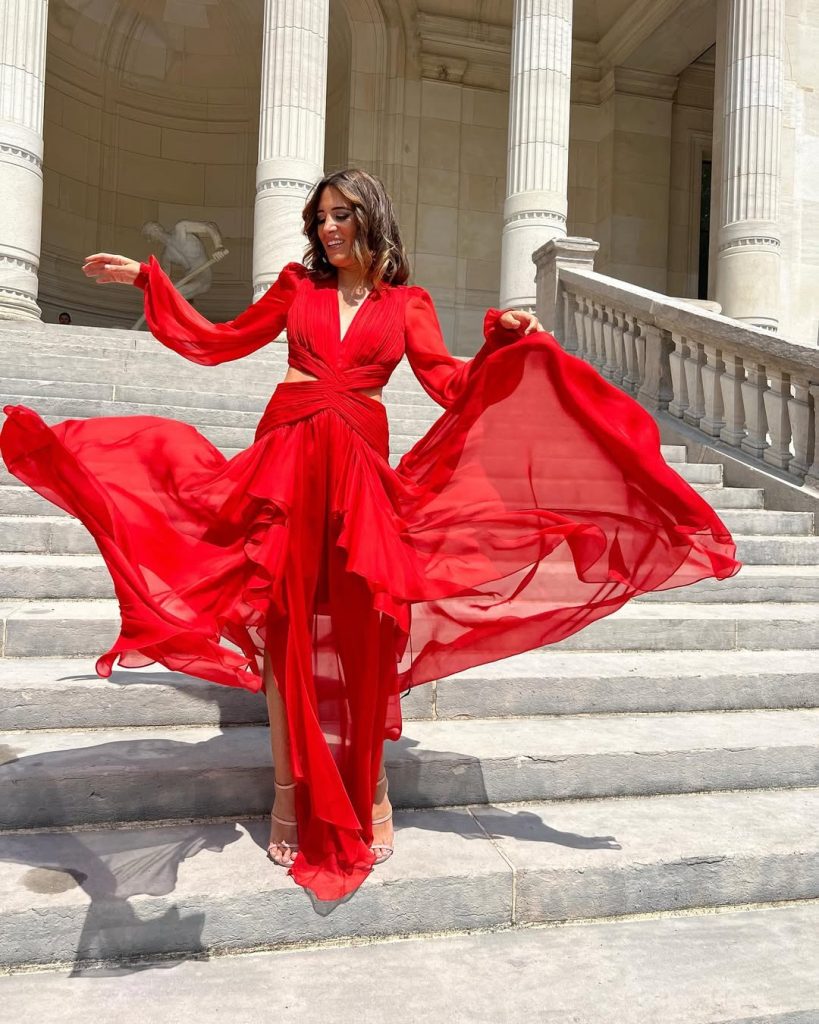 There’s something undeniably cinematic about this look. It belongs at formal garden events or as a Wedding guest moment, where you want to Impress without saying a word. I’d keep accessories restrained—perhaps delicate gold earrings—and avoid heavy layering. The magic here lies in motion, so let the fabric do the storytelling.