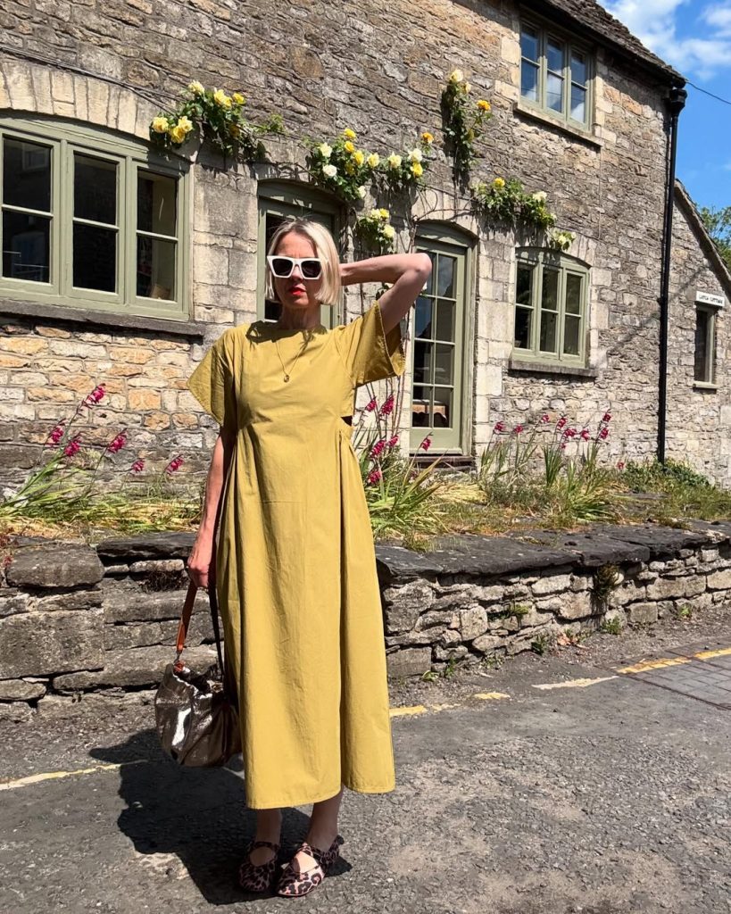 This look feels like a quiet morning in a European garden—timeless, soft, and endlessly wearable. It’s perfect for daytime events or even a relaxed option for wedding guests. Add a woven bag or pearl accents for personality, but steer clear of overly bright accessories. The elegance here is in its subtlety.