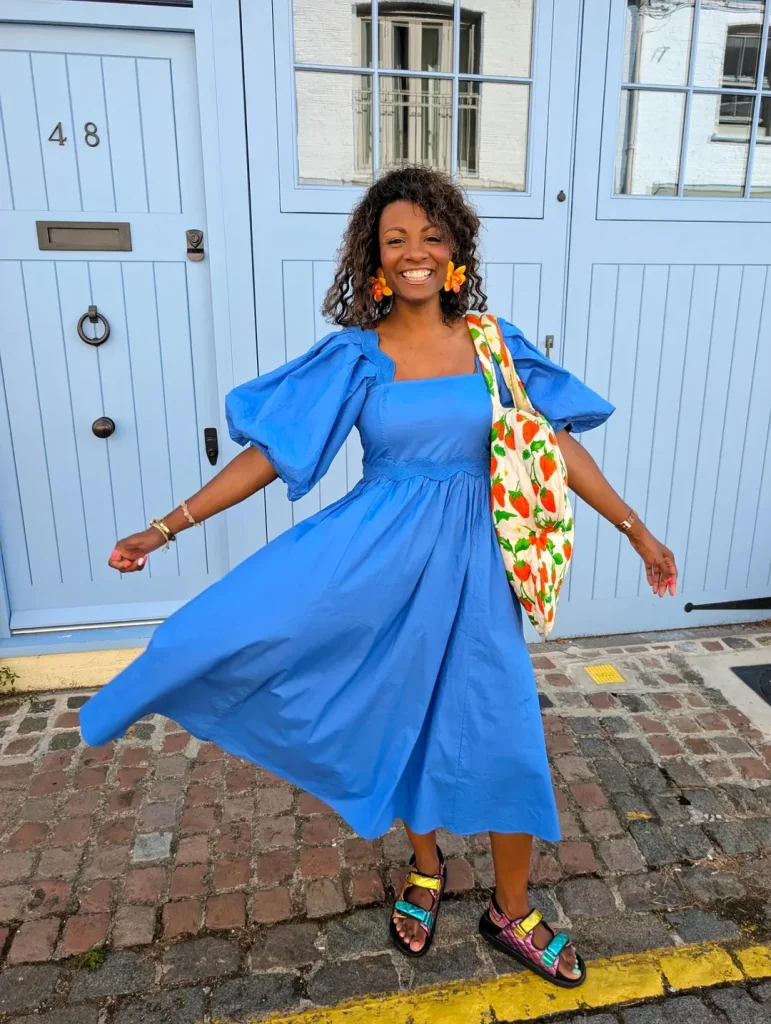 This look is all about presence. Perfect for parties, date nights, or summer celebrations, it’s designed to Impress. I’d lean into monochrome styling or gold accents, but avoid mixing too many competing tones. The bold color already does the work.