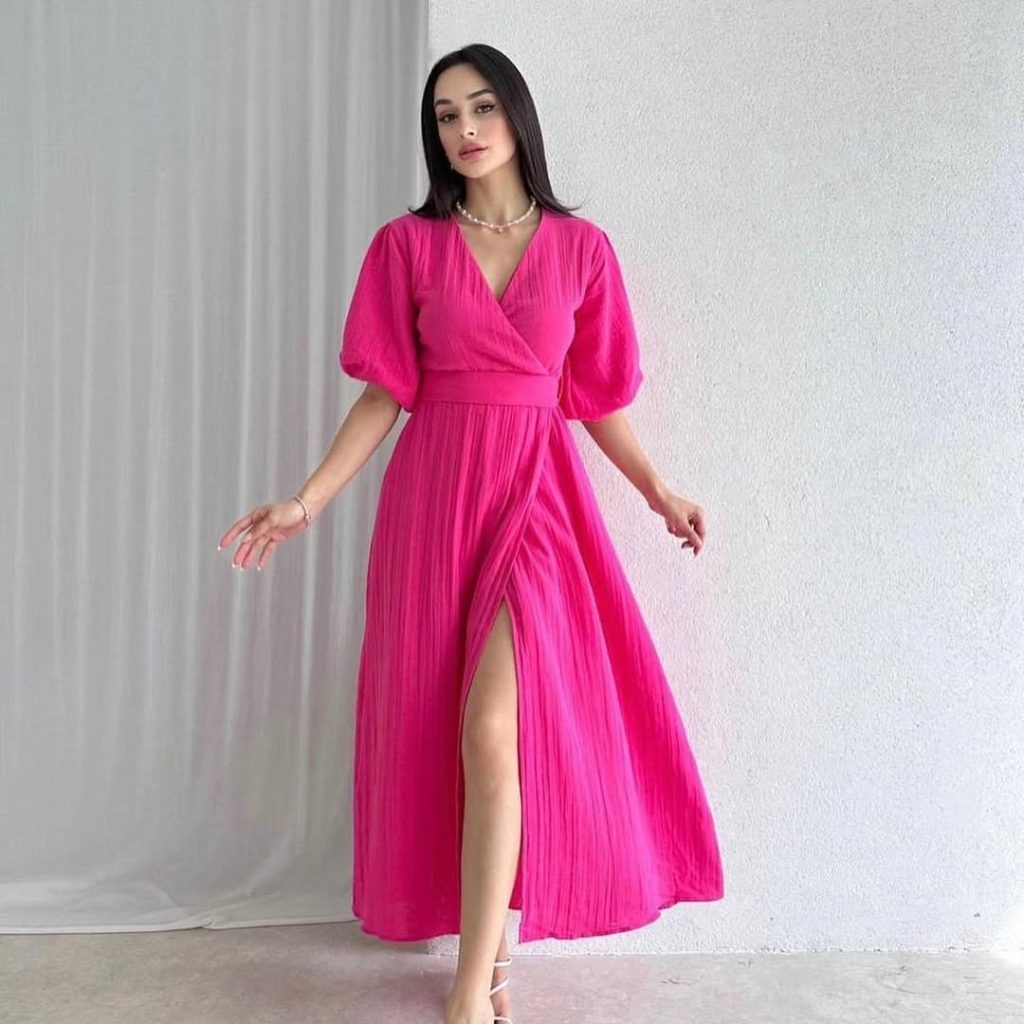 A vibrant Pink Maxi dress with flowing fabric delivers bold femininity with a soft, romantic edge.