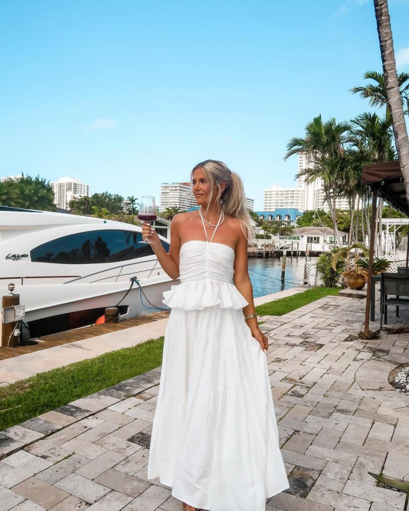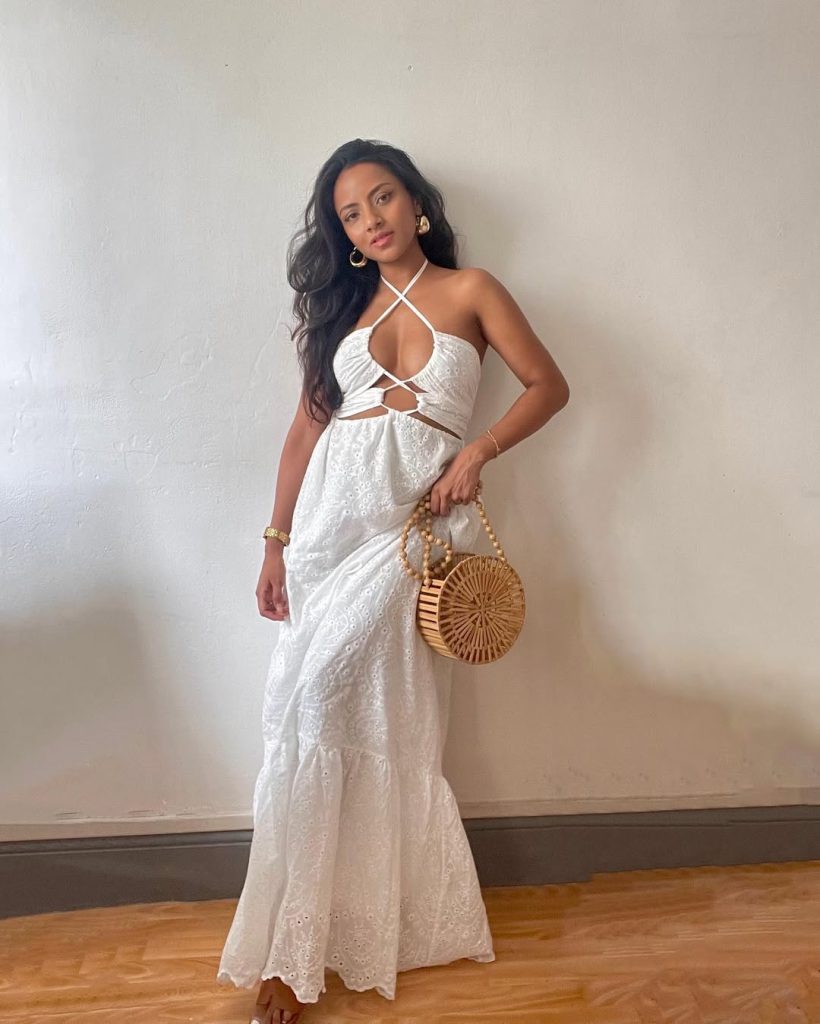 A breezy white maxi dress captures that carefree summer spirit with a soft, feminine edge and a touch of sophisticated elegance.