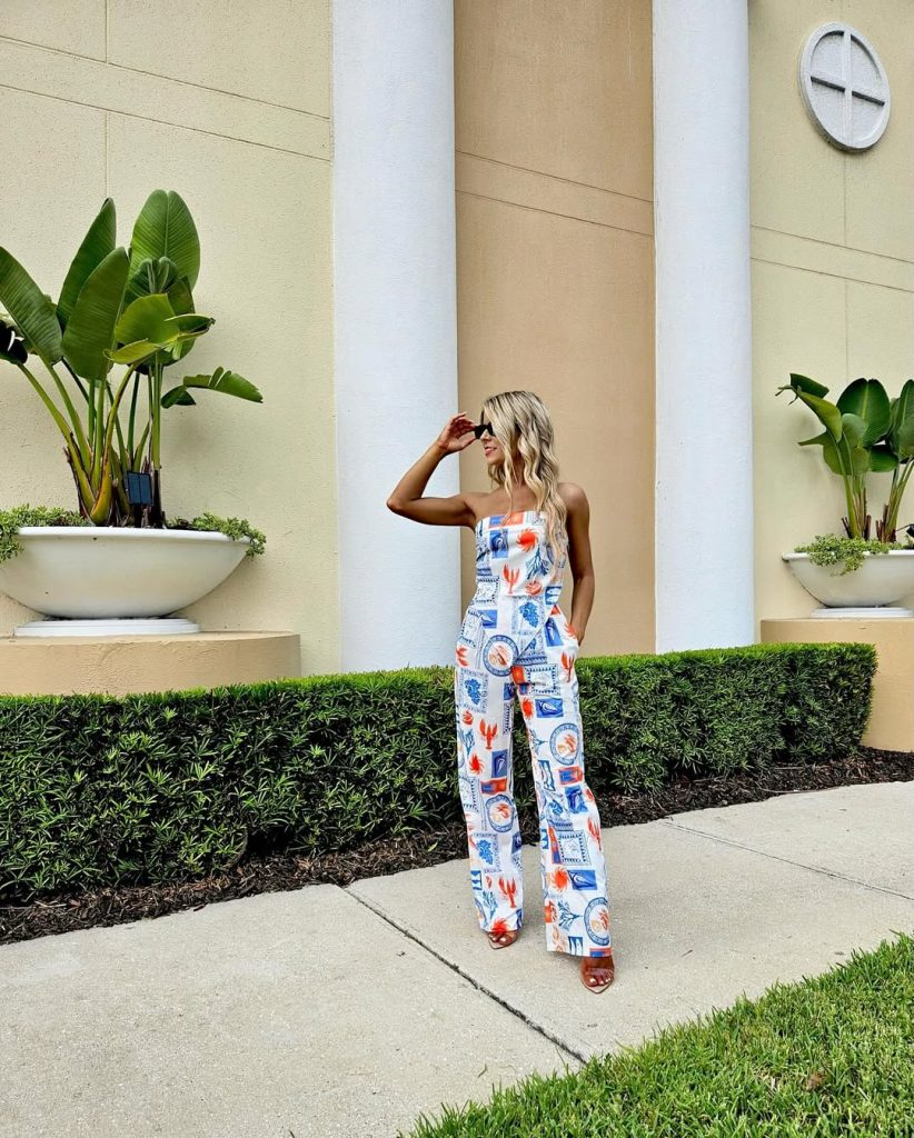 21. Printed Strapless Jumpsuit with Coastal Vibe