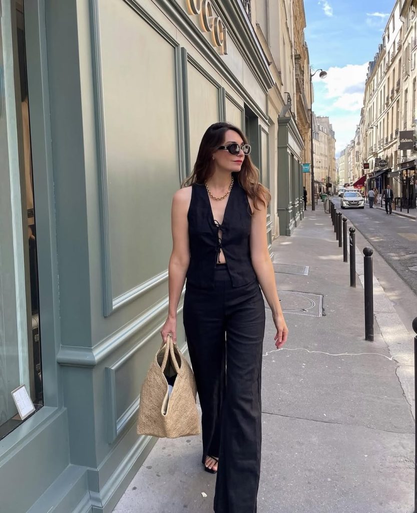 This is power dressing with a summer twist—clean, confident, and undeniably chic. Perfect for city days, dinners, or travel, it fits into elevated Ideas 2026 for those who love minimalism with impact. Keep accessories bold but controlled, and avoid adding extra layers. The strength of this look lies in its structure and simplicity.