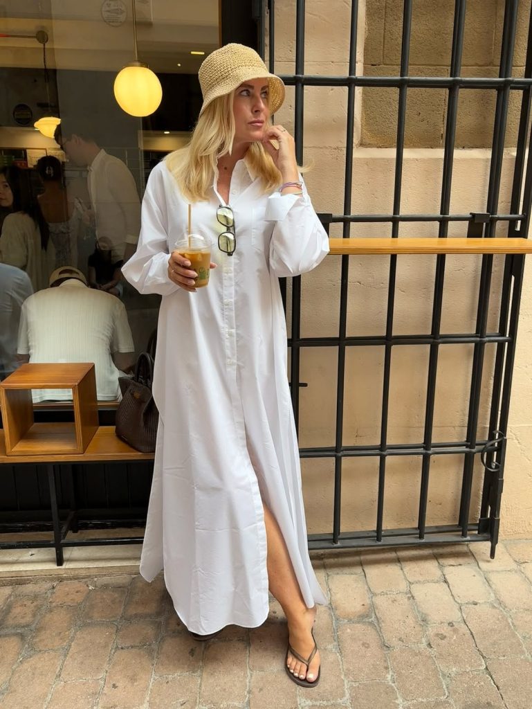 A flowing neutral dress offers understated elegance and embodies timeless, classy summer dressing.