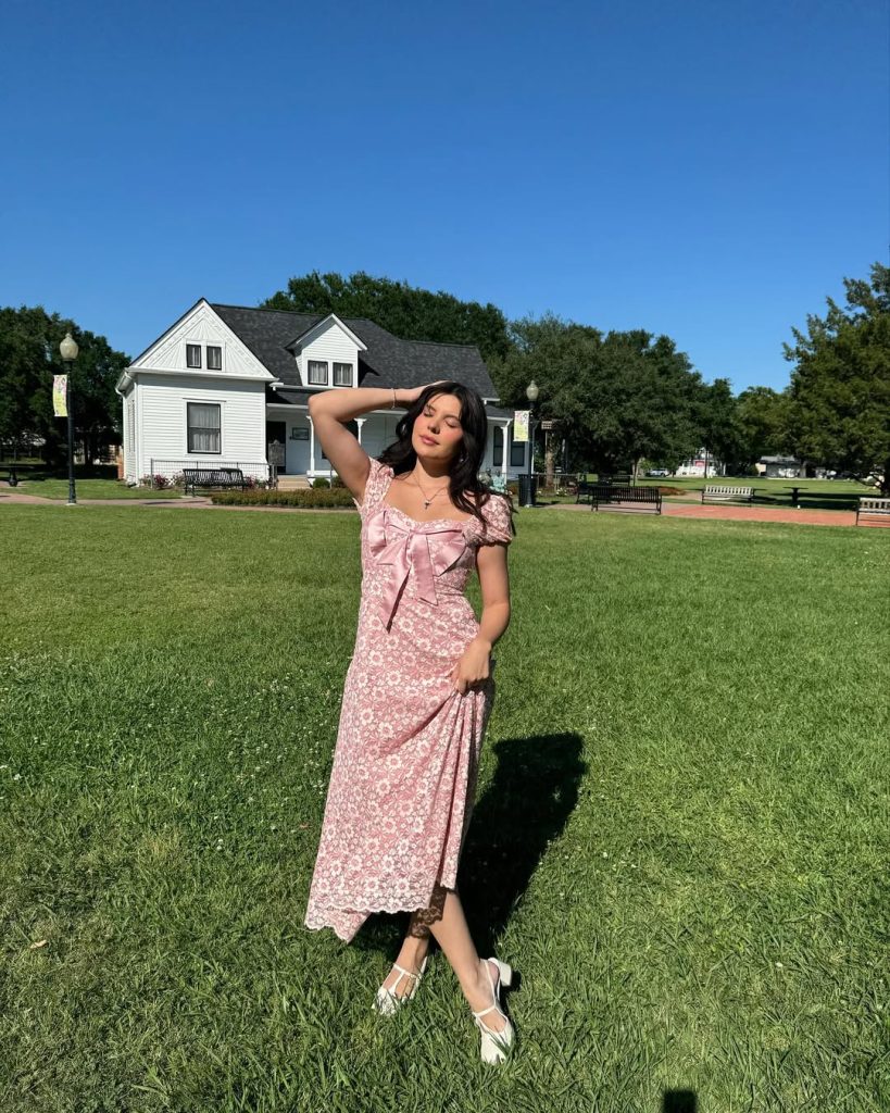 There’s a gentle charm in this look that feels almost storybook-like. It fits perfectly into casual dress alternatives and soft Inspo styling for 2026 women. Ideal for daytime outings, cafés, or city strolls, it benefits from light accessories. Avoid heavy or dark pieces—this outfit thrives on its airy palette and delicate details.