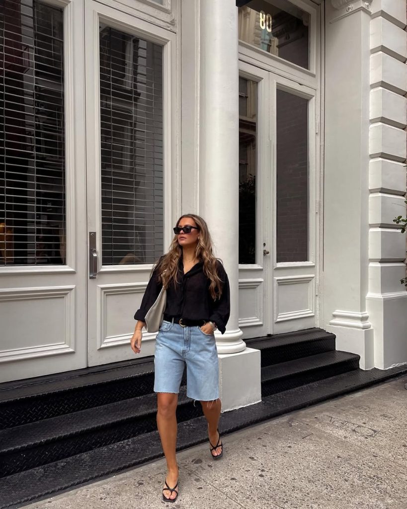 5. Relaxed Black Shirt with Denim Bermuda Shorts