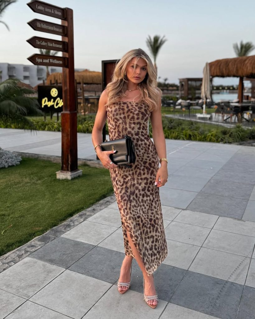 There’s a certain power in wearing leopard—it never whispers. This look is ideal for dinners, rooftop parties, or vacation evenings where you want to stand out. It fits into Inspo and elevates casual dresses with a glamorous twist. Keep styling sleek: a low bun or soft waves work best. Avoid heavy layering; let the print lead the narrative for a striking 2026 women’s evening look.